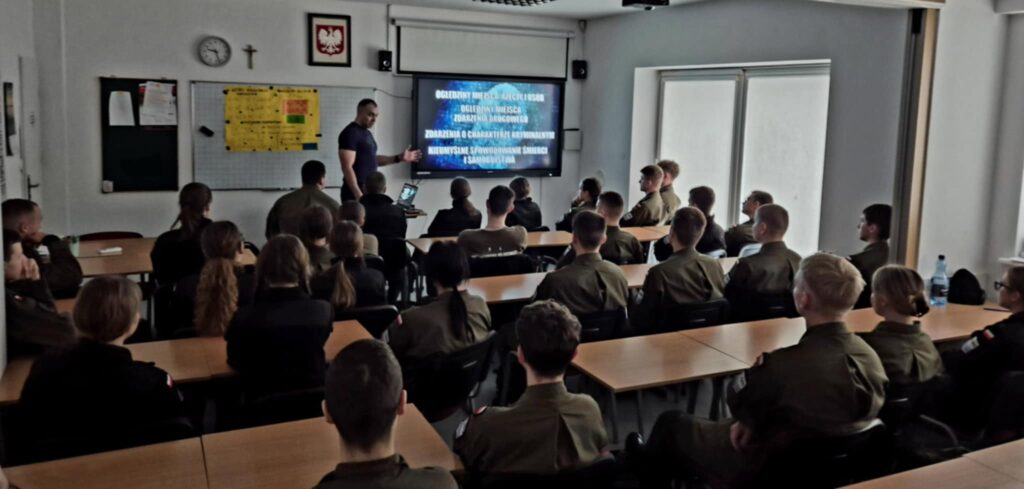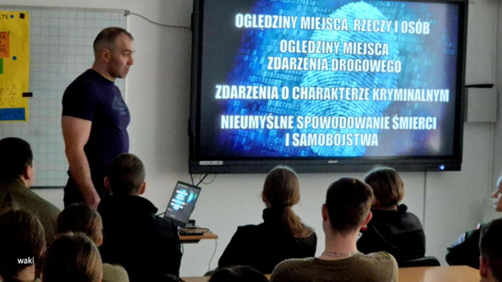 W dniu dzisiejszym klasa 3. oraz 4. OPW w ramach „Służb mundurowych” uczestniczyły w zajęciach przeprowadzonych przez Technika Kryminalistyki z KPP w Pucku Pana asp. Patryka Lewickiego. Technik kryminalistyki to funkcjonariusz policji odpowiedzialny za ujawnianie, zabezpieczanie i dokumentowanie śladów na miejscach przestępstw (włamania, wypadki, zabójstwa). Do głównych zadań Technika należy zbieranie dokumentacji fotograficznej i wideo miejsca zdarzenia, daktyloskopowanie (zabezpieczanie odcisków palców), pobieranie materiału biologicznego (DNA), zabezpieczanie śladów traseologicznych (obuwie) i balistycznych. Dziękujemy za ciekawą prelekcję oraz pokaz jak ciężka i ważna jest to praca. Zapraszamy ponownie.